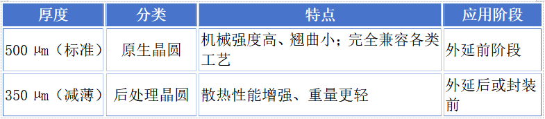 近年来,随着外延生长、封装技术以及热管理方案的不断进步,SiC 衬底的标准厚度已从 500 µm 逐步演进至 350 µm,在某些应用中甚至更薄。