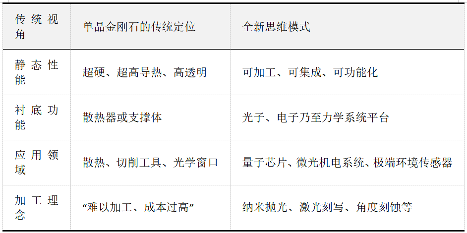 单晶金刚石不应再被局限于 “散热器” 或 “工业切削工具” 的标签。它有望成为未来微系统、光电子器件、量子计算组件乃至 “三维雕刻平台” 的核心基础。要释放其全部潜力,需实现从 “材料性能应用” 到 “结构设计创新” 的思维转变 —— 不仅要利用其固有优势,更要拓展其应用可能。