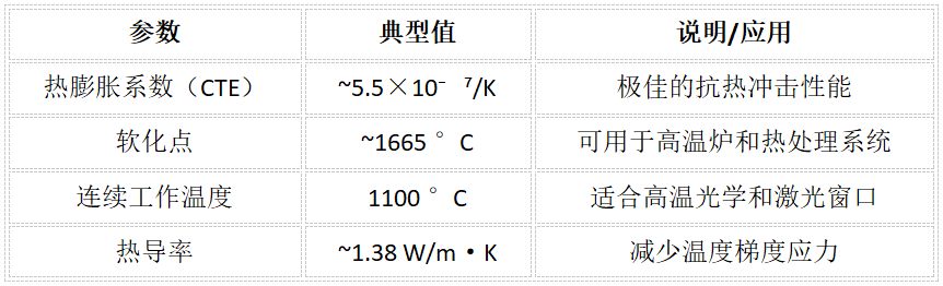 热学稳定性优异: 低膨胀系数、高软化点、抗热冲击强